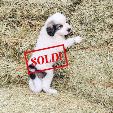 When our puppies are ready for adoption they will have been dewormed regularly, have had their first shots, and have been checked by our vet (we can provide vet records on request). They are born in a pen in our sheep barn and are exposed to sheep from birth. We continue to introduce them to other livestock as the puppies develop.